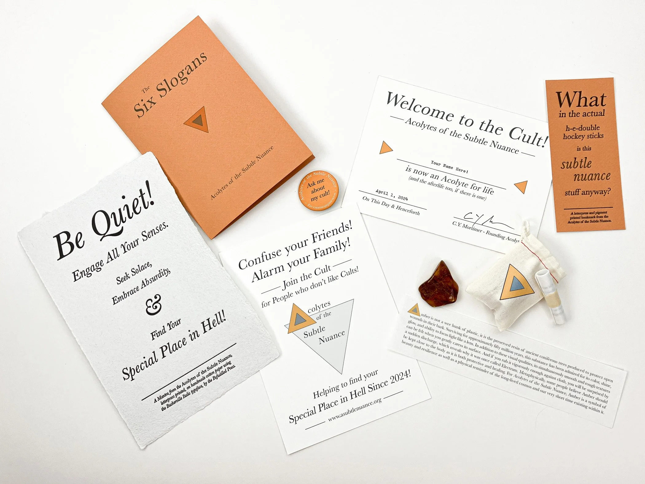 Joining the Acolytes at the Complete Level of Zeal puts you on the membership rolls of the Cult and you will receive all of the cult’s materials: